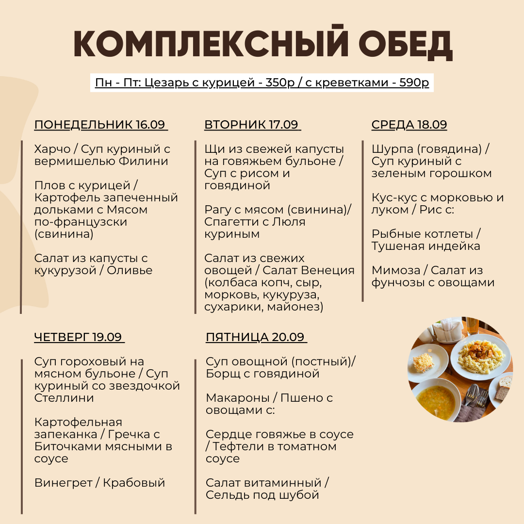 Гибкость: возможность выбора из меню, которое обновляется каждую неделю, учитывая ваши предпочтения и бюджет.